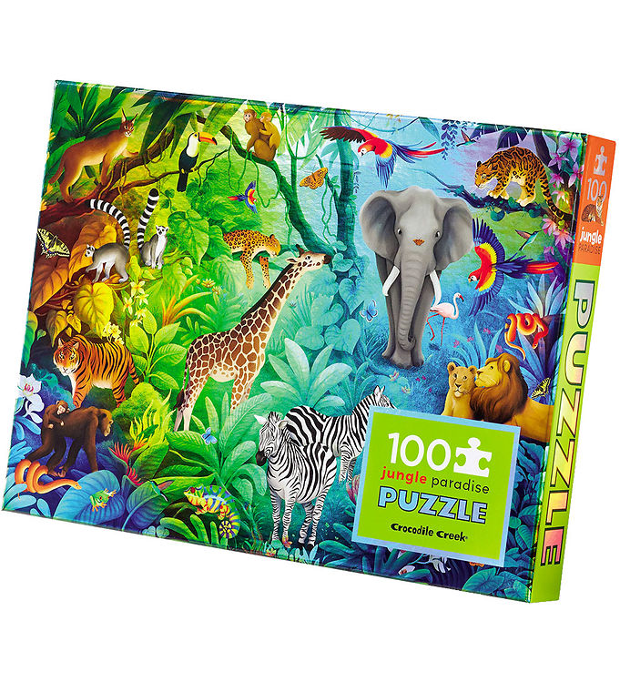 Oplev magien ved jungleeventyret med Crocodile Creek Puslespil – 100 Brikker – Jungle Paradise. Dette puslespil er ikke bare en underholdende aktivitet; det er en rejse ind i en farverig og livlig verden fyldt med eksotiske dyr og fantastiske planter. Designet til både børn og voksne, inviterer dette puslespil til timevis af hyggeligt samvær, hvor hele familien kan deltage i at udforske den frodige jungle sammen.